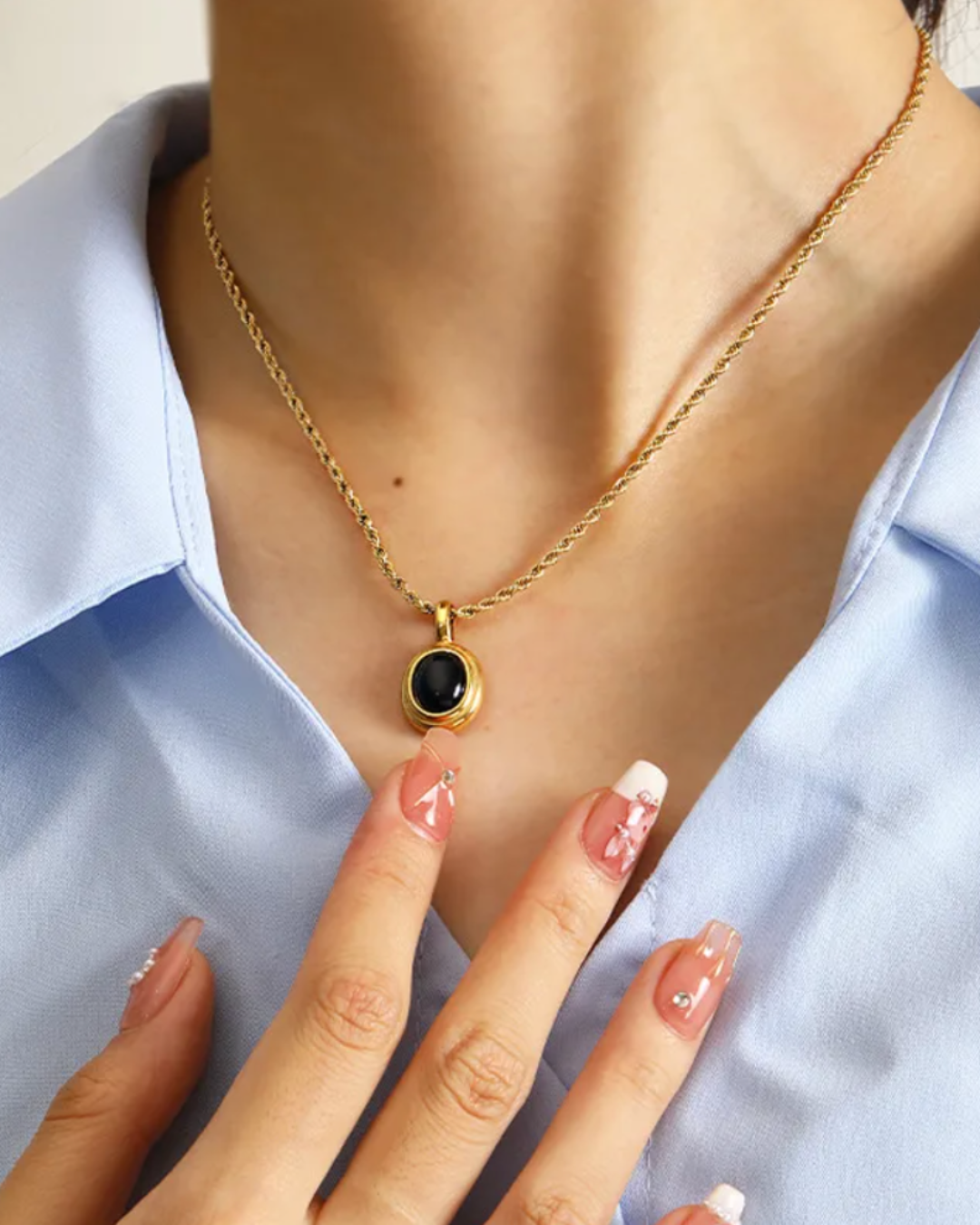 Disfruta del toque clásico y atemporal con éste collar con incrustación de piedra ágata que se combina con la durabilidad del acero de titanio y el lujo del chapado en oro de 18 quilates para crear una pieza elegante y resistente.