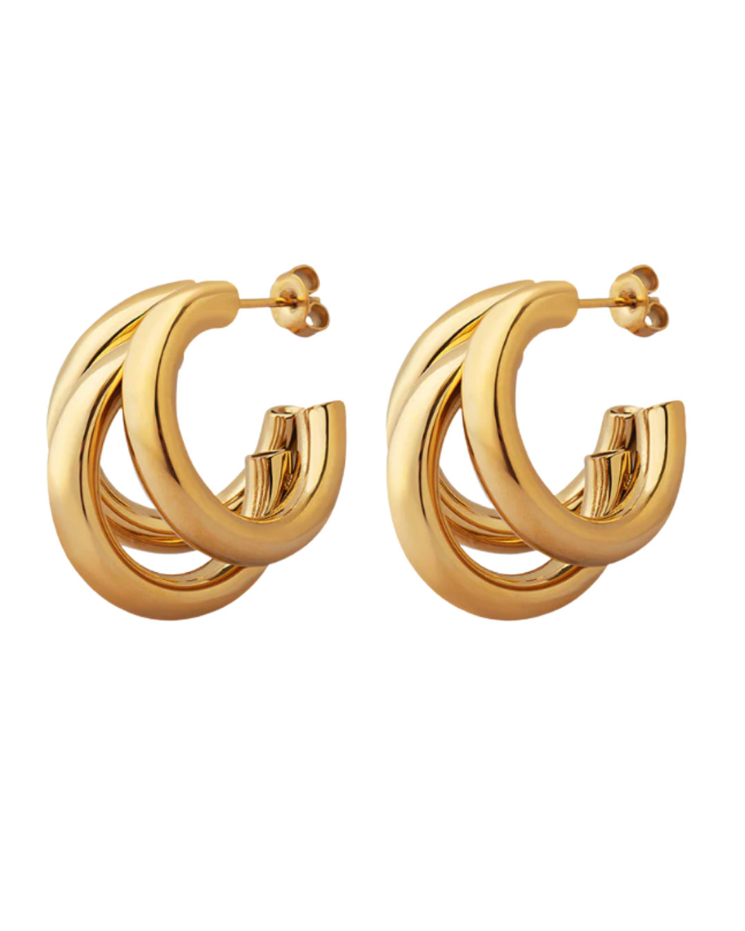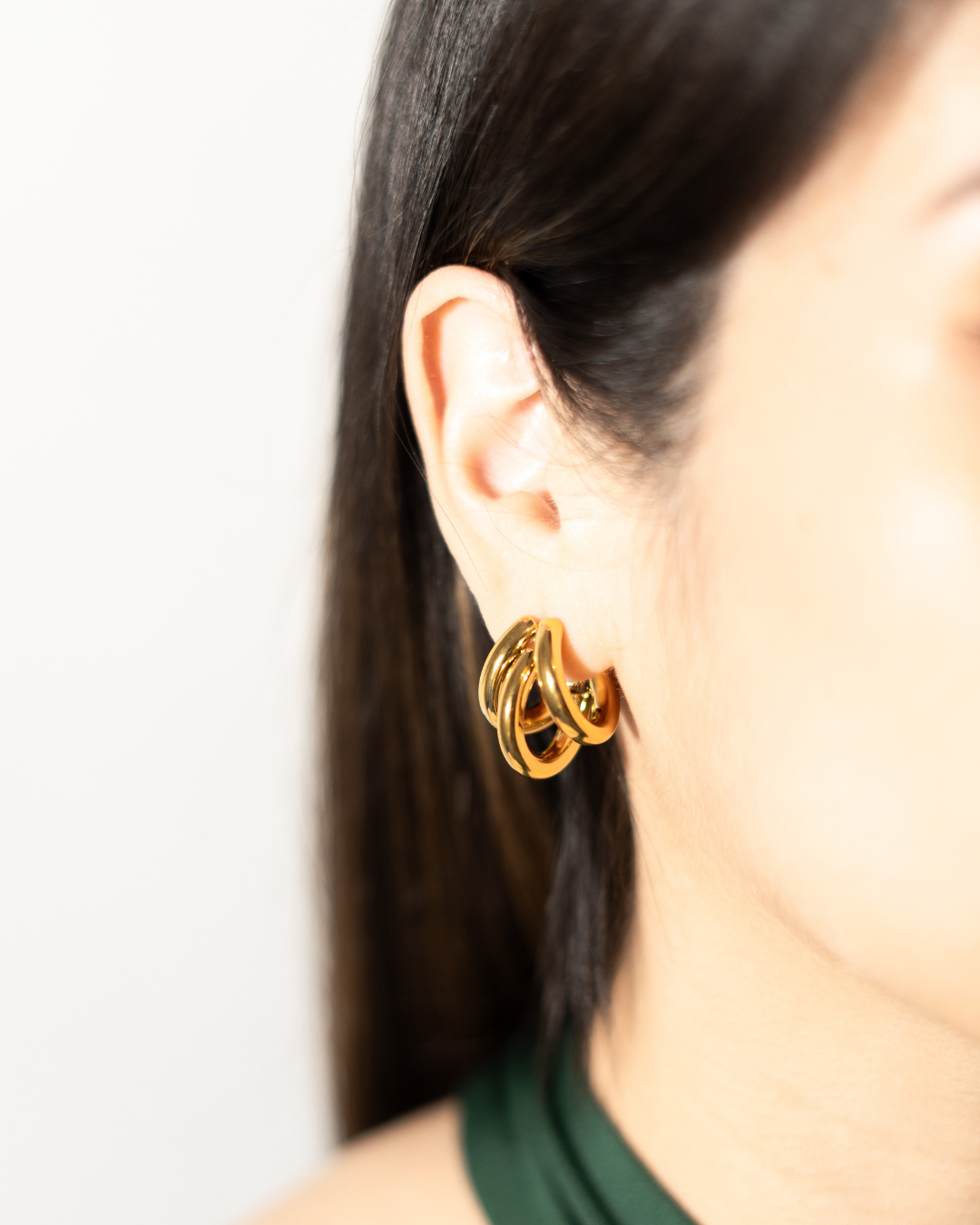 Diseñados con un triple lazo de Acero inoxidable, estos aretes te brindarán un toque de sofisticación a tu look. Resaltando la belleza y durabilidad de su material, serán tu accesorio perfecto para cualquier ocasión.