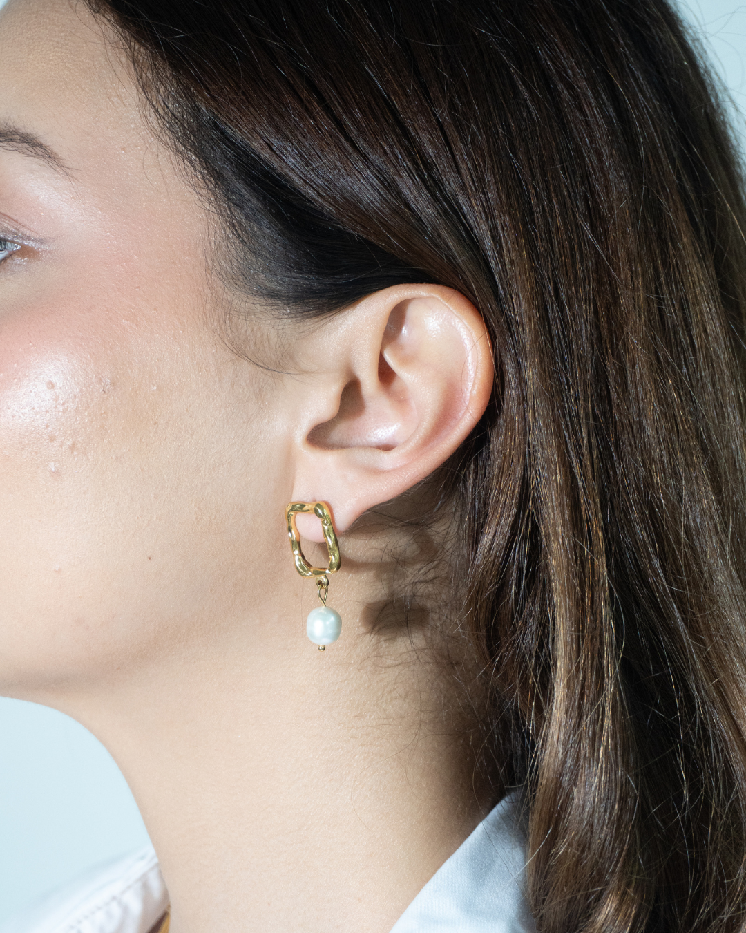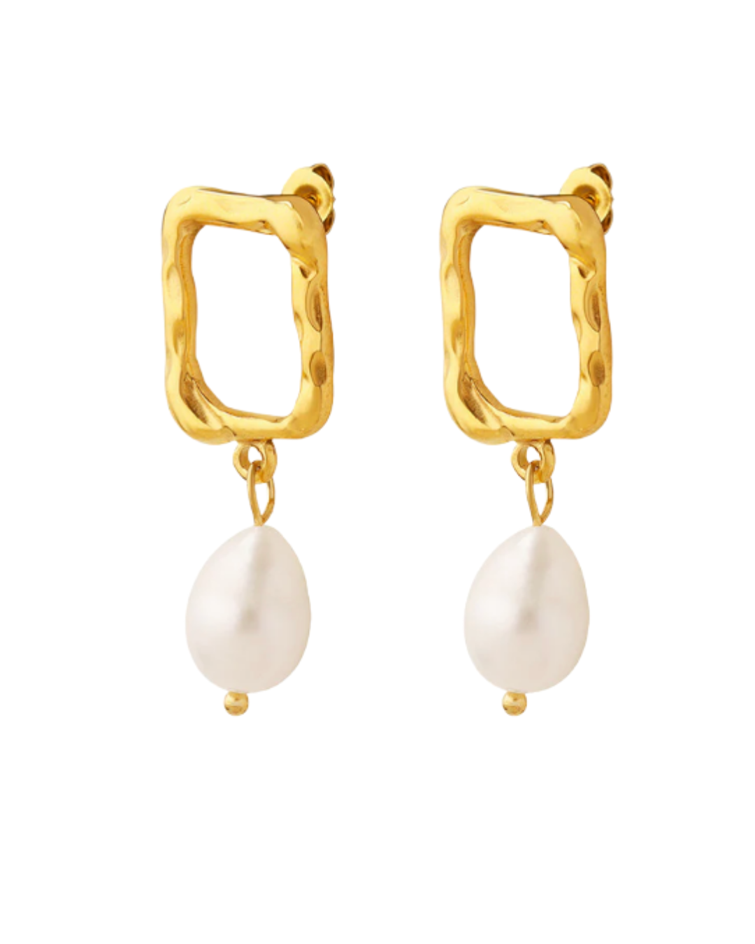 Pendientes con estructura rectangular hechos de Acero inoxidable y detallado de perla, con una esencia distintiva y elegante. Perfectos para agregar un toque de minimalismo y sofisticación a cualquier look.