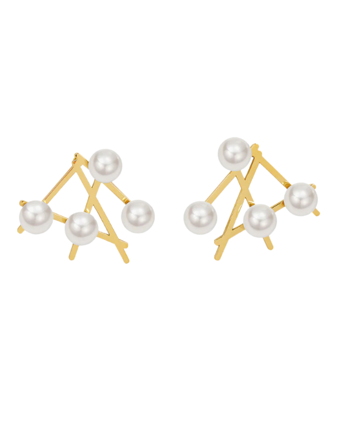Piezas hechas de Acero de Titanio chapado en oro de 18 quilates con diseño irregular y detallado de perlas, con una esencia distintiva y elegante. Perfectos para agregar un toque de minimalismo y sofisticación a cualquier look.