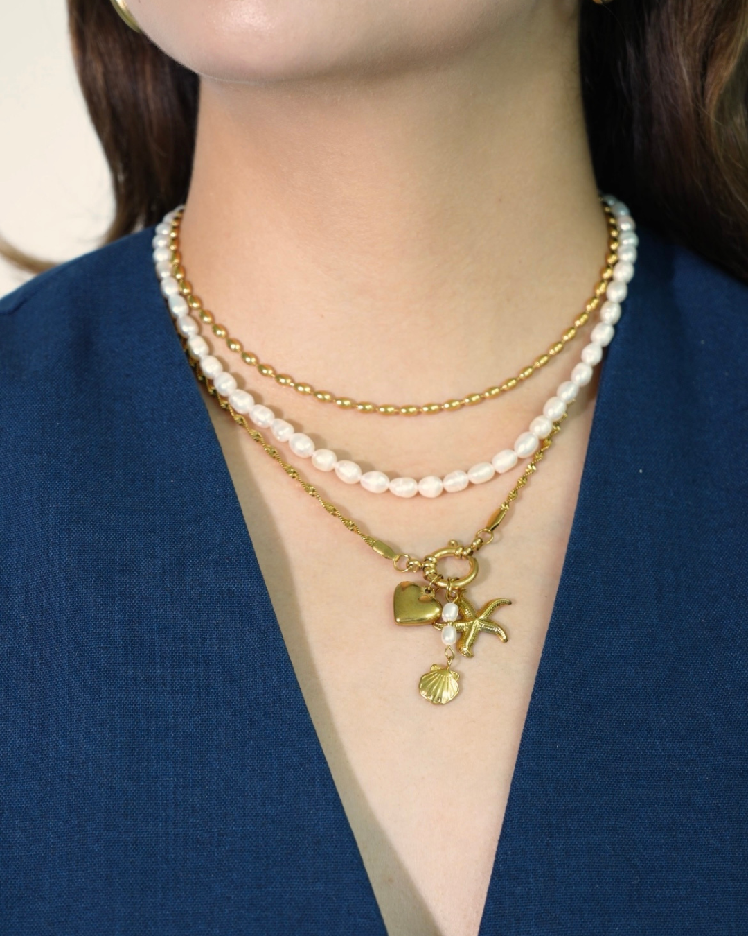 Confeccionada con perlas de rio, ésta pieza te hará sentir como una verdadera reina. Luce como una obra de arte con nuestra gargantilla única en su tipo. ¡Disfruta de su estilo de lujo en todo momento!