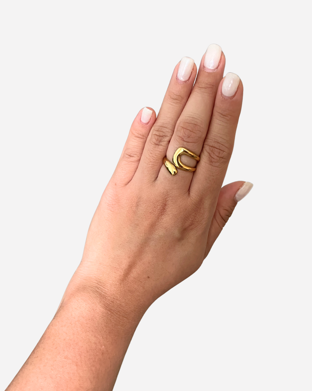 Anillo abierto creado de acero inoxidable con diseño de lineas irregulares minimalistas es el complemento perfecto dar el último glow a tu outfit.