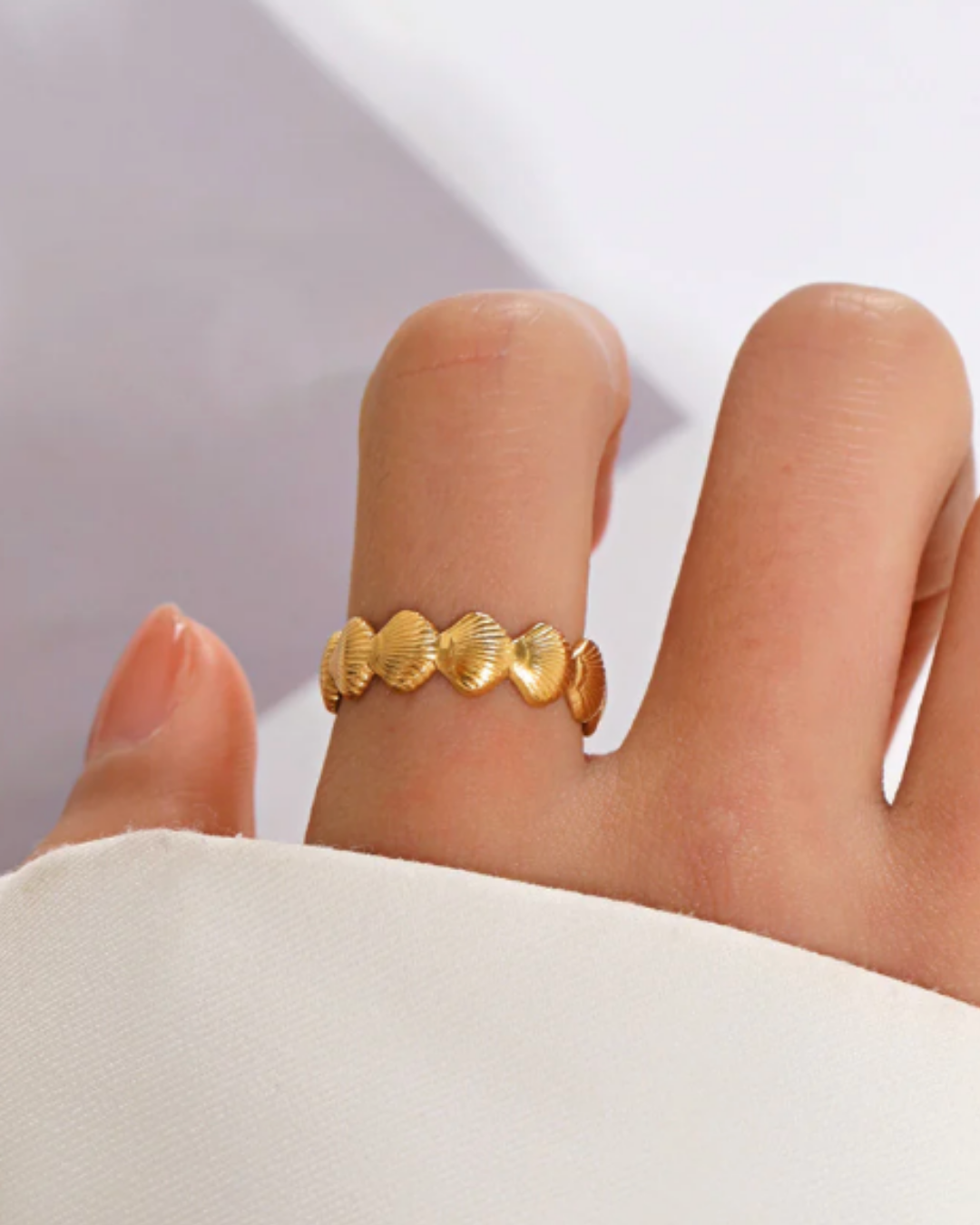 Disfruta de éste anillo abierto ajustable con diseño delicado de conchas, hecho de Acero Inoxidable. La definición de una pieza minimalista, fresca y resistente para cualquier ocasión. ¡Un accesorio perfecto y duradero para complementar tu estilo!