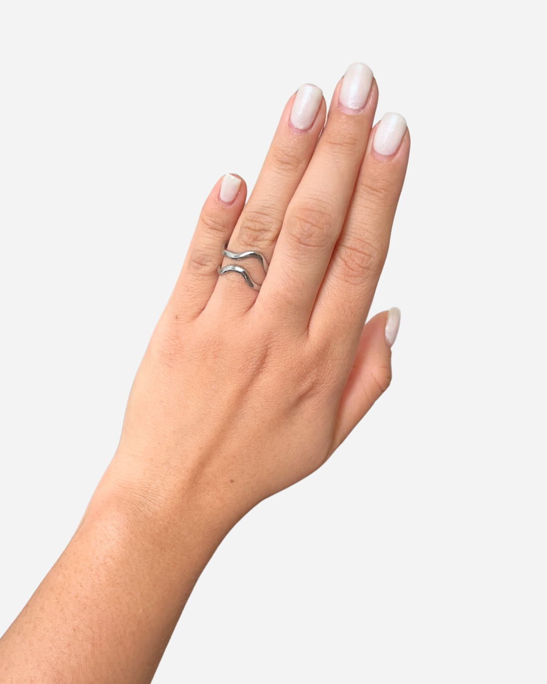 Anillo abierto creado de acero inoxidable con diseño de lineas irregulares minimalistas es el complemento perfecto dar el último glow a tu outfit.