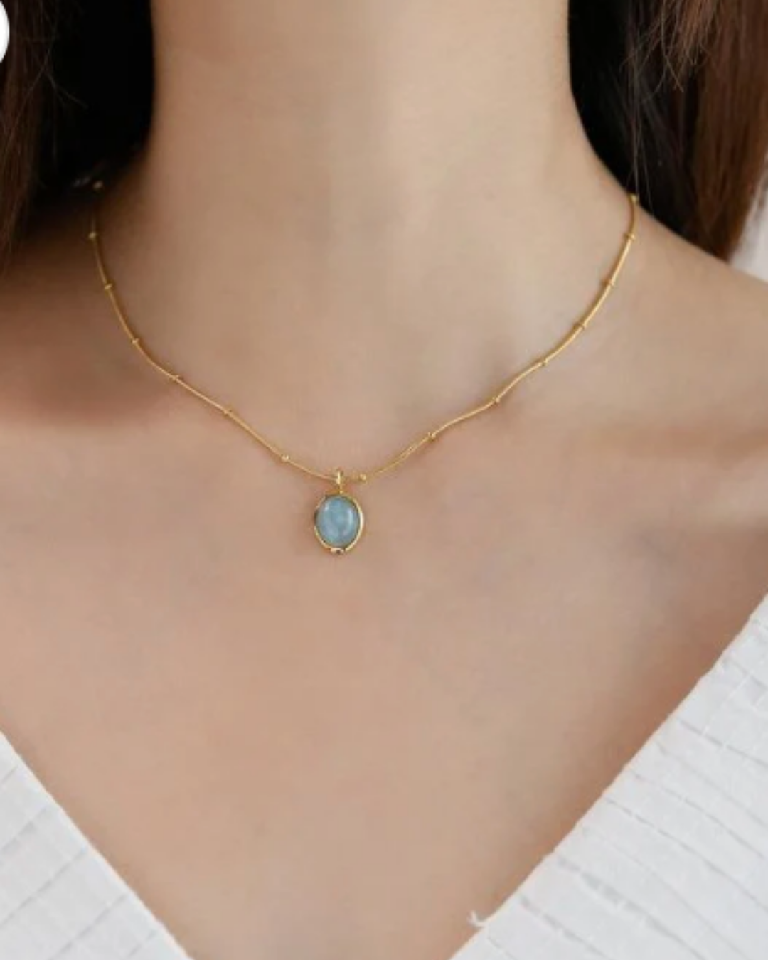 Collar con Piedra natural turquesa, delicado diseño elaborado de Acero Titanio chapado en oro de 18 quilates.