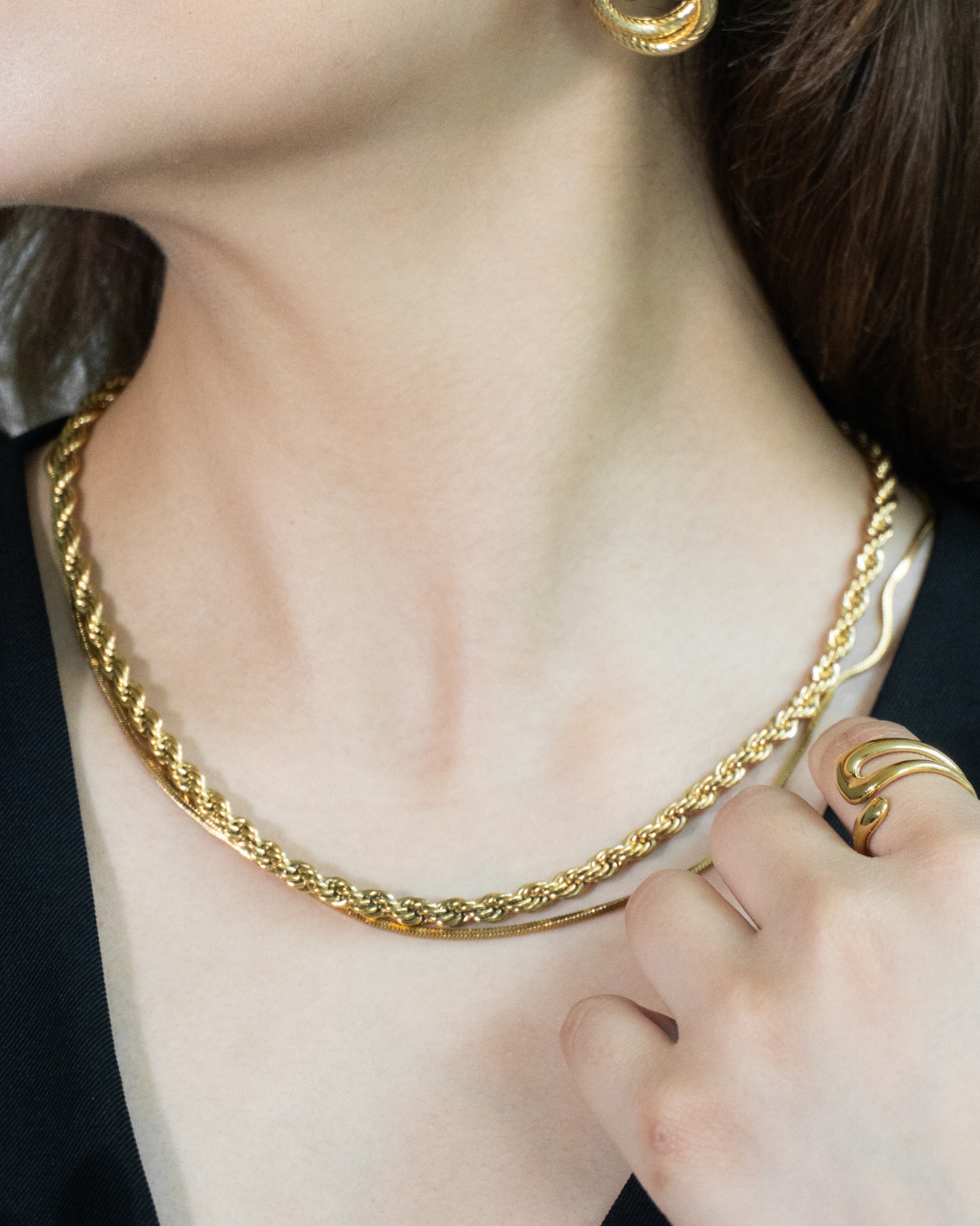 Disfruta del toque clásico y atemporal con ésta cadena que combina la durabilidad del acero inoxidable y el lujo del chapado en oro de 18 quilates para crear una pieza elegante y resistente.