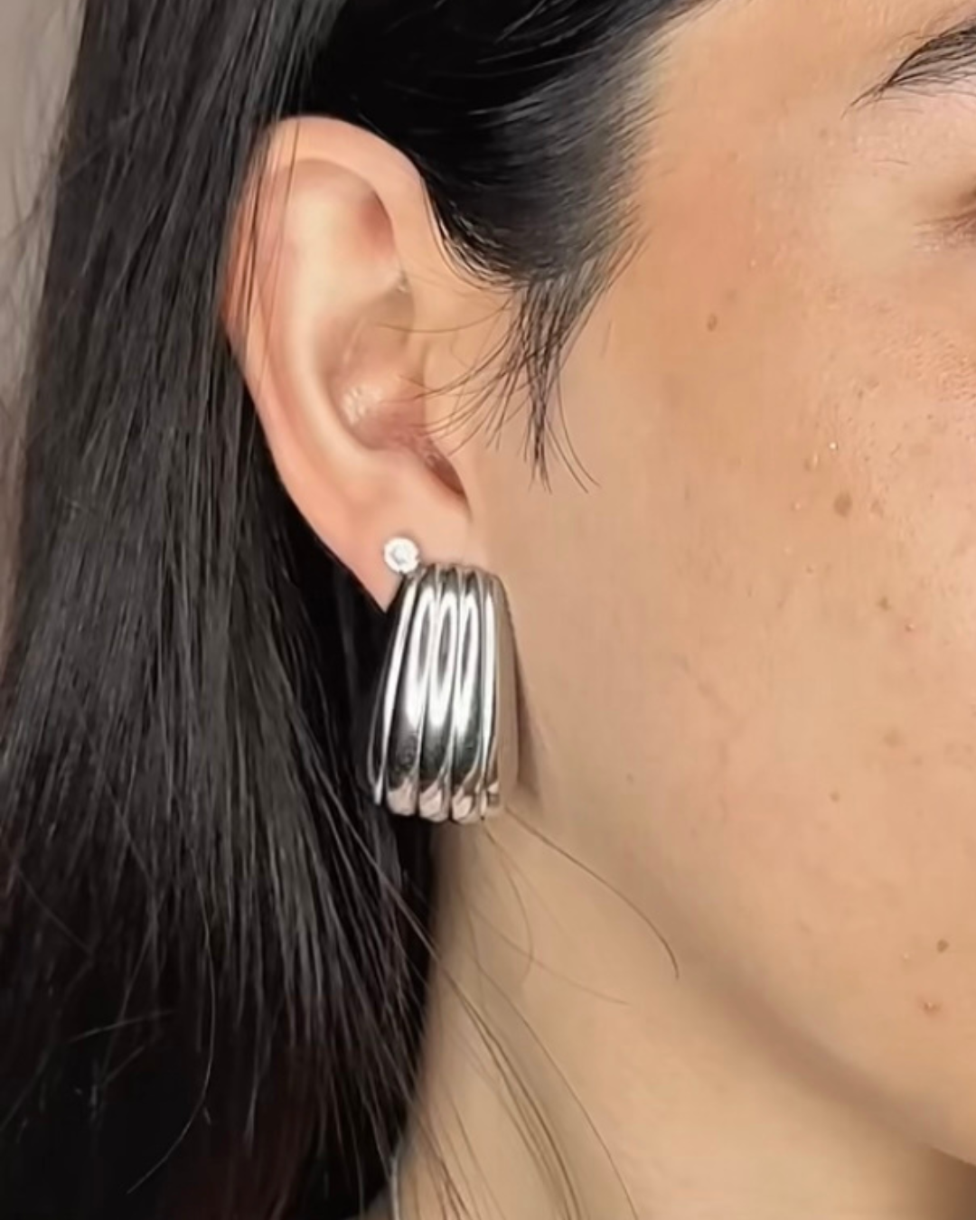 Aretes con diseño de lineas de acero inoxidable ofreciendo un look sofisticado que remarcan tu presencia en todo lugar.